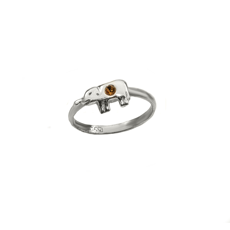 Silverring med utsmyckning i form av en elefant, i elefanten sitter en orange cubic zircon. Storlek: 44/14,1mm. Bredd: 1,7mm. Elefant: 5mm. Material: Silver 925 och cubic zircon.