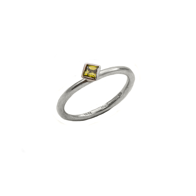 Silverring med en fyrkantig, grön cubic zircon.