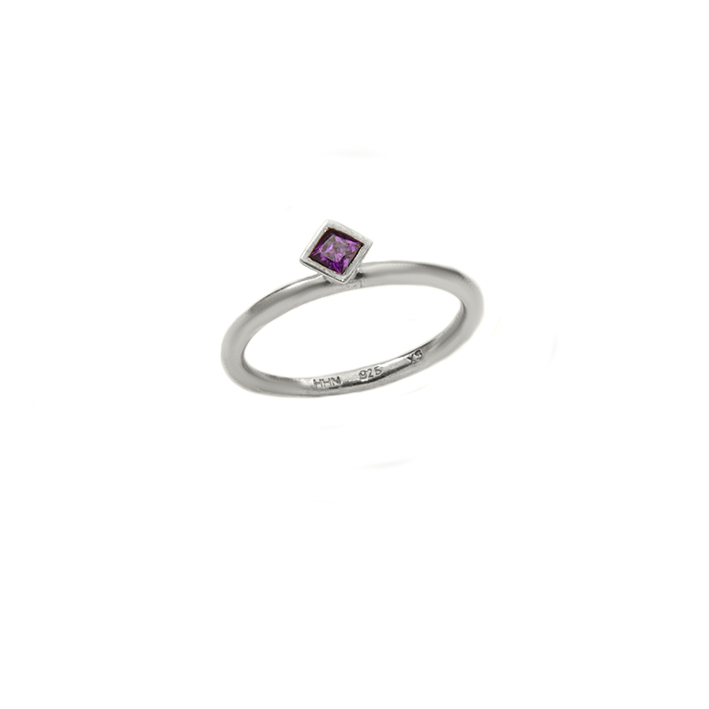 Silverring med en fyrkantig, lila cubic zircon.