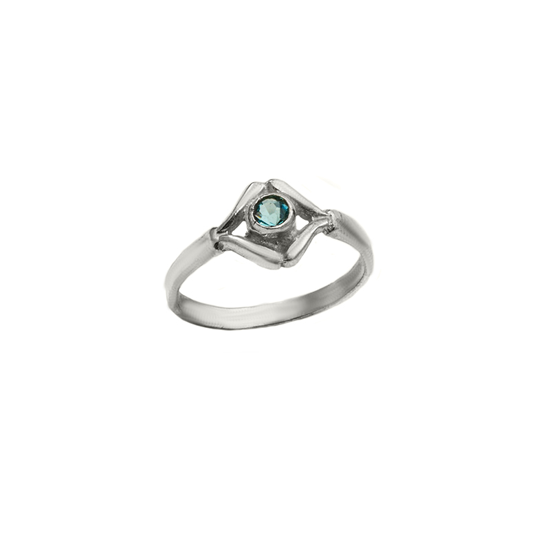 Silverring med en turkos cubic zircon, runt cubic zirconen är det mönster.